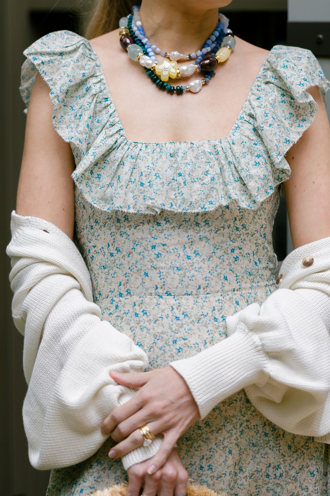 • Ruffle detail at neck and sleeve