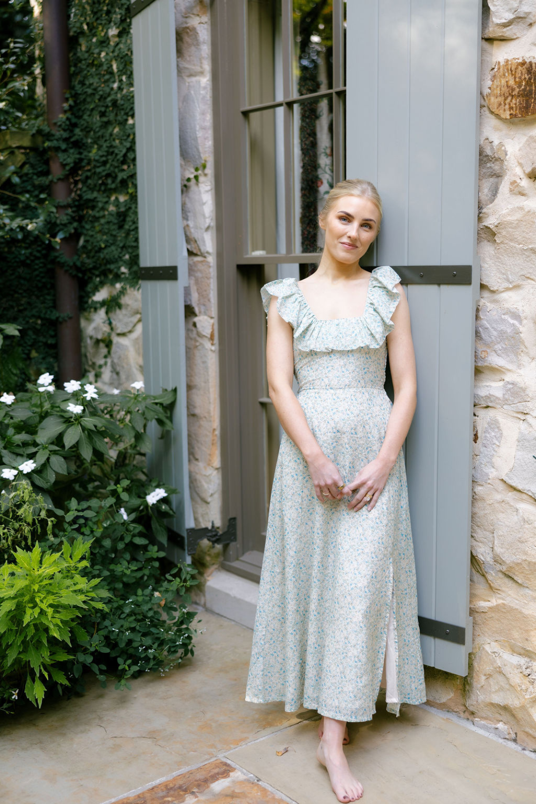 Romantic yet undeniably effortless, the Iris Dress in English Garden is the kind of piece that makes you feel put together with minimal effort. Designed with a flattering square neckline, smocked back, and ruffled details at the neck and sleeves, it’s fitted through the bodice with a tailored skirt that skims the body just right. A side slit adds a little edge, balancing its dreamy, vintage-inspired floral print. Wear it with strappy sandals or throw it on with flats—it’s an instant outfit.