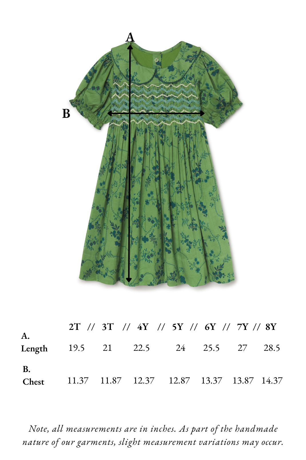 Hand-smocked detailing and a full, twirl-ready skirt make the Emmy Dress a true staple of spring dressing. The Thistle print lends botanical character and vintage polish, creating a silhouette suited for family photos and special outings. Light, breathable cotton ensures all-day comfort while preserving its refined appeal.
