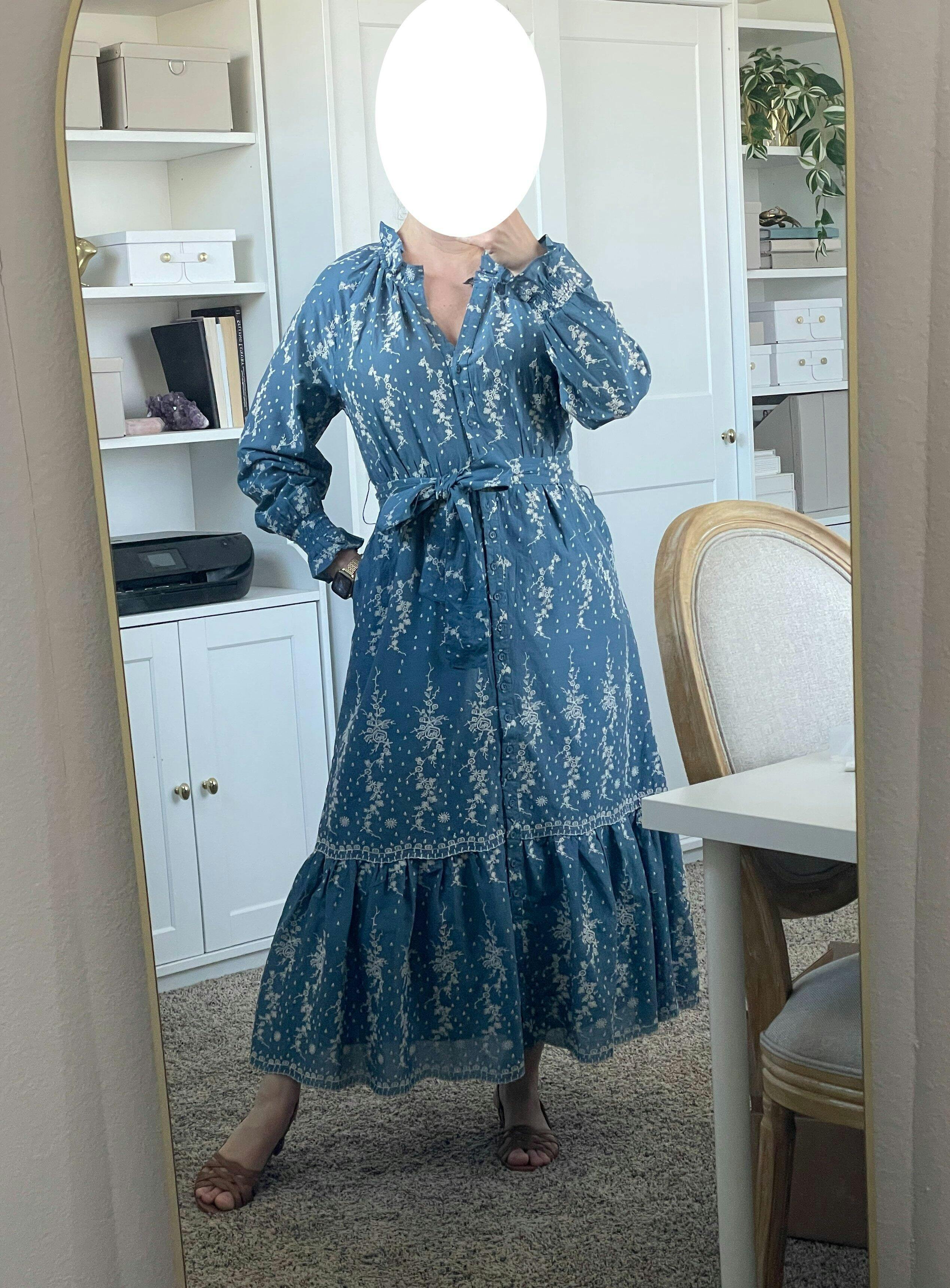 The Lele Dress in Wedgewood Eyelet brings a refined yet approachable feel to spring dressing. Featuring a soft Wedgewood blue base with intricate ivory embroidery, this style blends thoughtful details with everyday ease. The gathered waist, romantic raglan sleeves, and grosgrain ribbon with woven-loop trim add dimension, while the quilted belt can be styled to suit any occasion or removed for a relaxed fit. With elastic gathering at the back, neckline, and wrists, the Lele Dress moves effortlessly through the season, perfect for gatherings or a quiet afternoon outdoors.